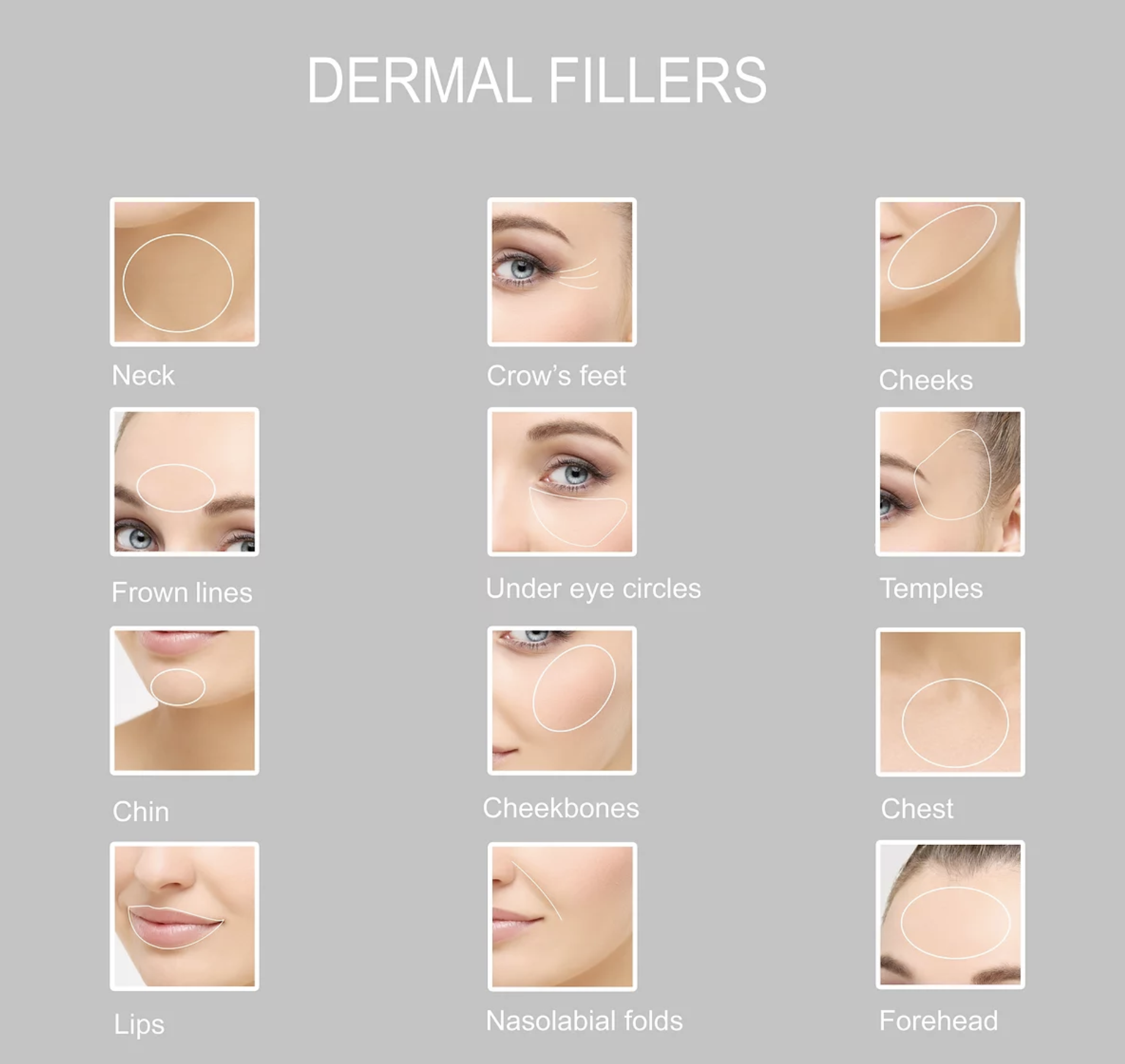 | Treatments | Tear Trough, Tear Trough (2 sessions), Nasolabial Lines, Marrionette Lines, Cheek Filler, 2mls any facial area |